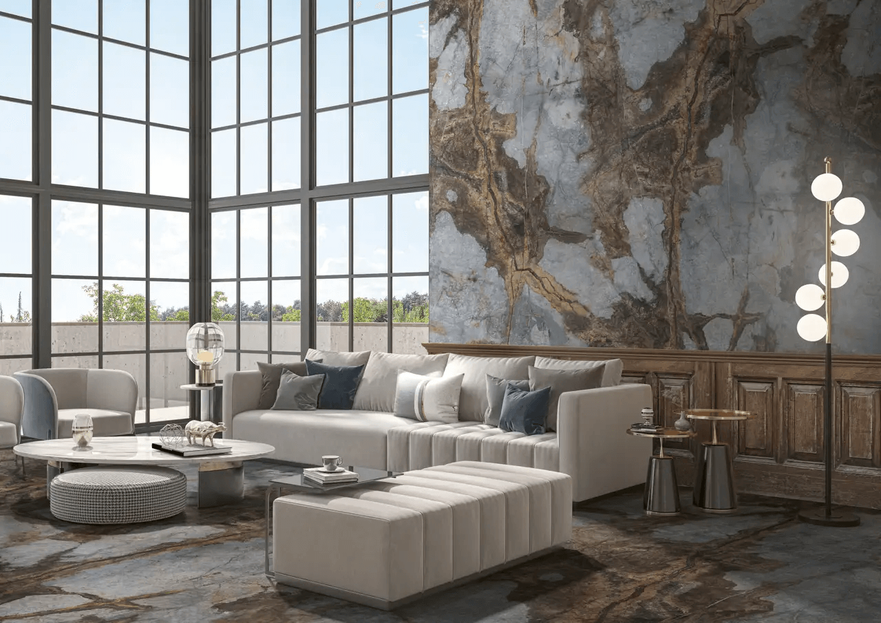 La gama de colores cálidos como el Mocha Mousse, beige, marrón o miel, son fáciles de encontrar. La variedad de tonalidades y estilos de cerámicos y porcelánicos con diseño de madera nos ofrece una amplia variedad con la cual experimentar. Otros, como los cerámicos y porcelánicos de mármol, también dan bastante juego.